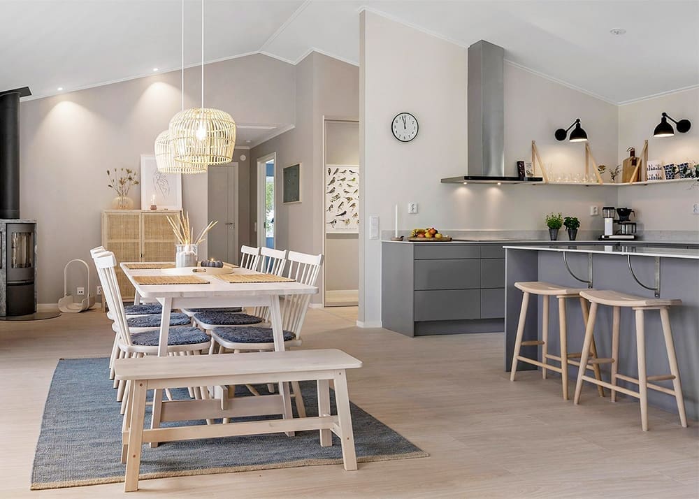 Der erste Schritt zu einer effektvollen Beleuchtung besteht darin, den passenden Ort für die Hängelampe zu finden. Eine einzelne Pendelleuchte über dem Esstisch oder mehrere kleinere Leuchten in einer Gruppe können im Essbereich eine besondere Wirkung entfalten.