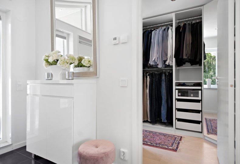 Der Eingangsbereich eines Hauses ist natürlich auch ein Ort, der gewisse Funktionen erfüllen soll: Dort steht in der Regel der Schuhschrank. Auch Jacken und Mäntel sollen dort ihren Platz finden – die häufig getragenen der Bewohner ebenso wie die der Gäste. Wer zwei Fliegen mit einer Klappe schlagen möchte, für den bietet sich eine Einbau-Garderobe mit einer Bank an. Hier können vor allem die Kinder ganz bequem die Schuhe an- und auch wieder ausziehen.