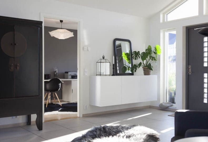 Ein großer Flur im skandinavischen Stil kann mehr sein als ein Eingangsbereich. Vollstellen sollte man ihn allerdings nicht. Aufeinander abgestimmte Farben und Deko bringen Ruhe in den großen Raum und sorgen für Gemütlichkeit.