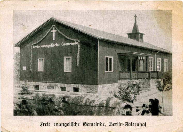 In Berlin-Adlershof war die freie evangelische Gemeinde (FEG) längere Zeit auf der Suche nach einem Grundstück, um ein Gemeindehaus zu errichten. Zuvor hatten sich die Mitglieder an wechselnden Orten zusammengefunden, doch es fehlte an Platz für Gemeindefeste. Am 1. Juli 1941 war es so weit: Kurz bevor der Erwerb von Grundstücken verboten wurde, kaufte die Gemeinde das Doppelgrundstück in der Handjerystraße 29/31. Geplant waren ein Wohnhaus mit Altenheim und ein auf dem Hof liegendes Gemeindehaus. Durch die Wirren des Krieges und die damit verbundene Geldentwertung wurde daraus allerdings nichts.