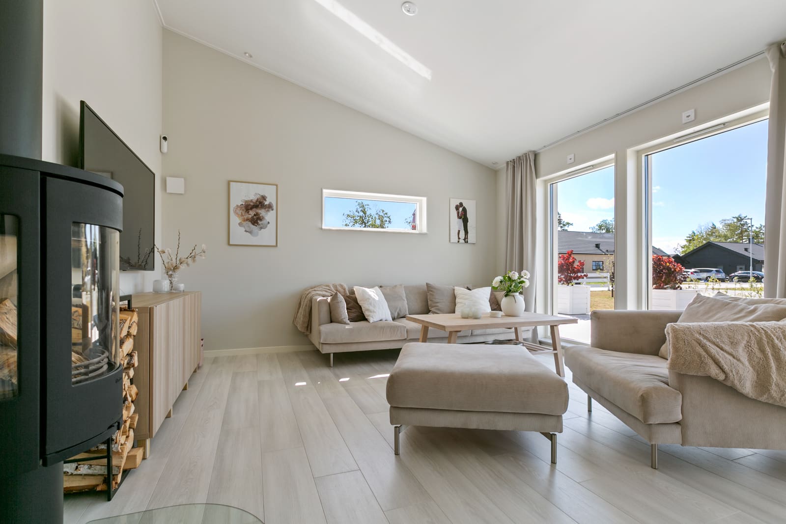 In skandinavischen Häusern sind Fenster oft größer und bewusster platziert als in vielen anderen Bauweisen. Sie holen das Tageslicht tief in den Raum und verbinden Innen- und Außenbereich miteinander.