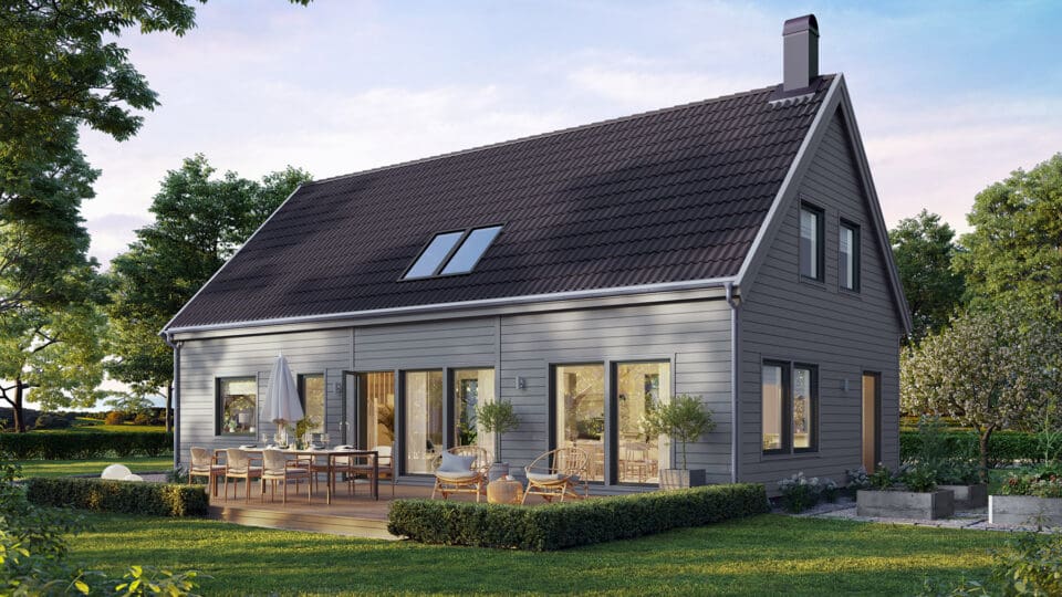 Dalhem Modern vereint ein offenes Wohnkonzept mit viel Stauraum in einer modernen Interpretation der klassischen Scheune. Das Ergebnis ist ein Zuhause, das sowohl durch sein zeitgemäßes Äußeres als auch funktionales Inneres überzeugt und sich gleichermaßen für städtische wie ländliche Umgebungen eignet. Das Herzstück des Hauses bildet der großzügige Wohn- und Essbereich, der standardmäßig mit einer großen Speisekammer ausgestattet ist – ein Traum für alle, die gerne kochen und ihre Familie und Freunde gastfreundschaftlich bewirten!