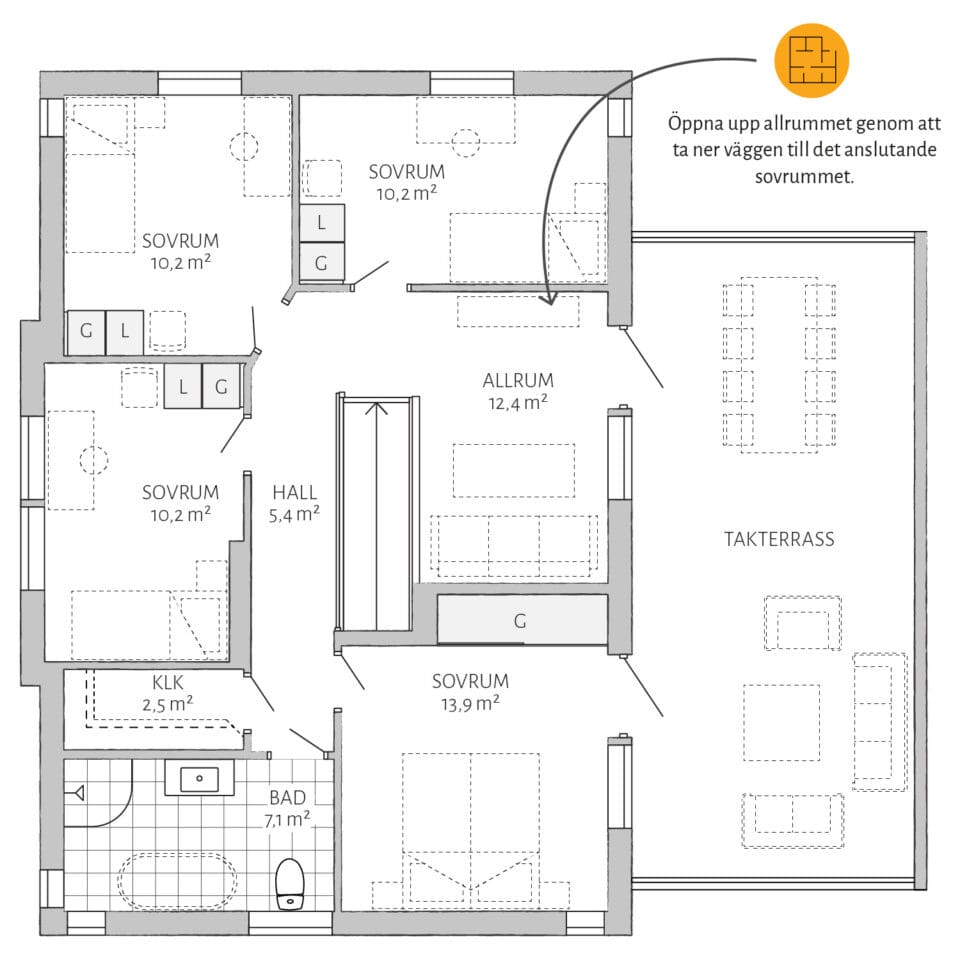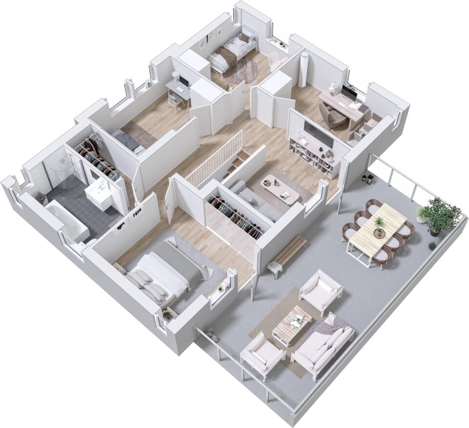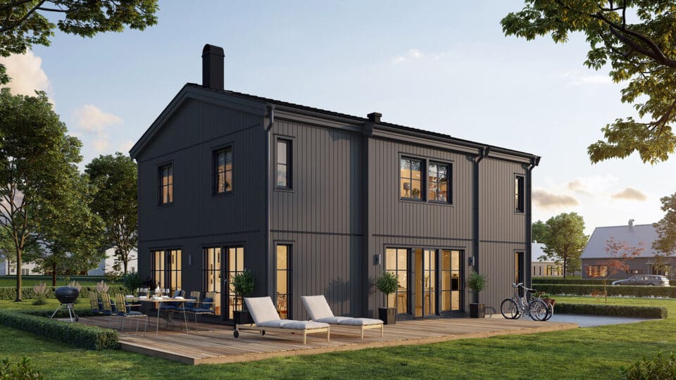 Die weitläufige Terrasse verleiht Ljunghem Industriell seinen besonderen Charme. Entdecke ein stilvolles Zuhause für die Stadtfamilie, die geräumig und stadtnah wohnen möchte, dabei jedoch keine Kompromisse bei Platz und sozialen Interaktionen eingehen will. Ljunghem Industriell bietet ausreichend Raum für Familientreffen, Teenager und Hobbys. Zu den Standardmerkmalen gehören großzügige Gemeinschaftsräume, vier Schlafzimmer sowie zusätzlicher Stauraum. Die Terrasse, die sowohl eine wunderschöne Aussicht als auch viel Privatsphäre bietet, rundet das Gesamtbild perfekt ab.