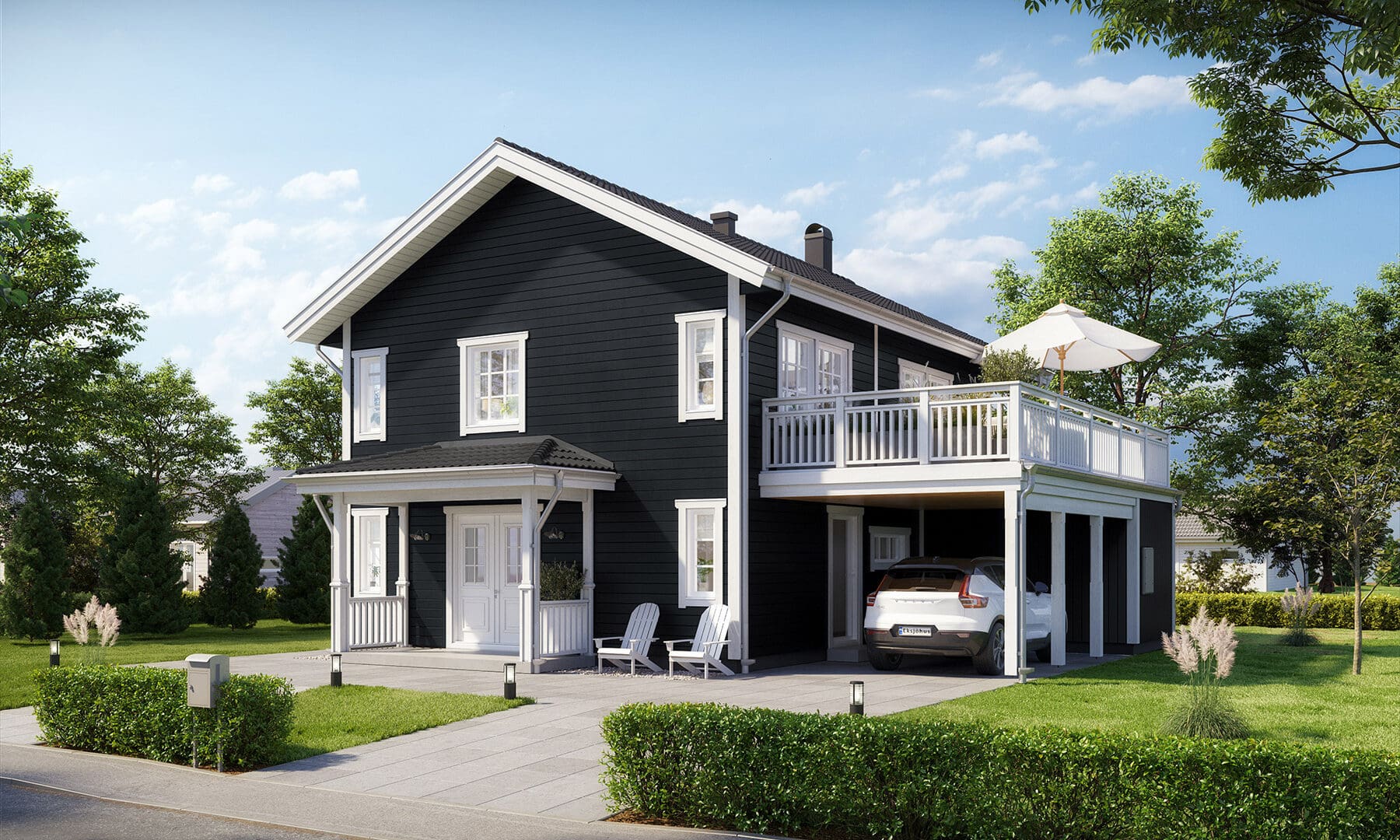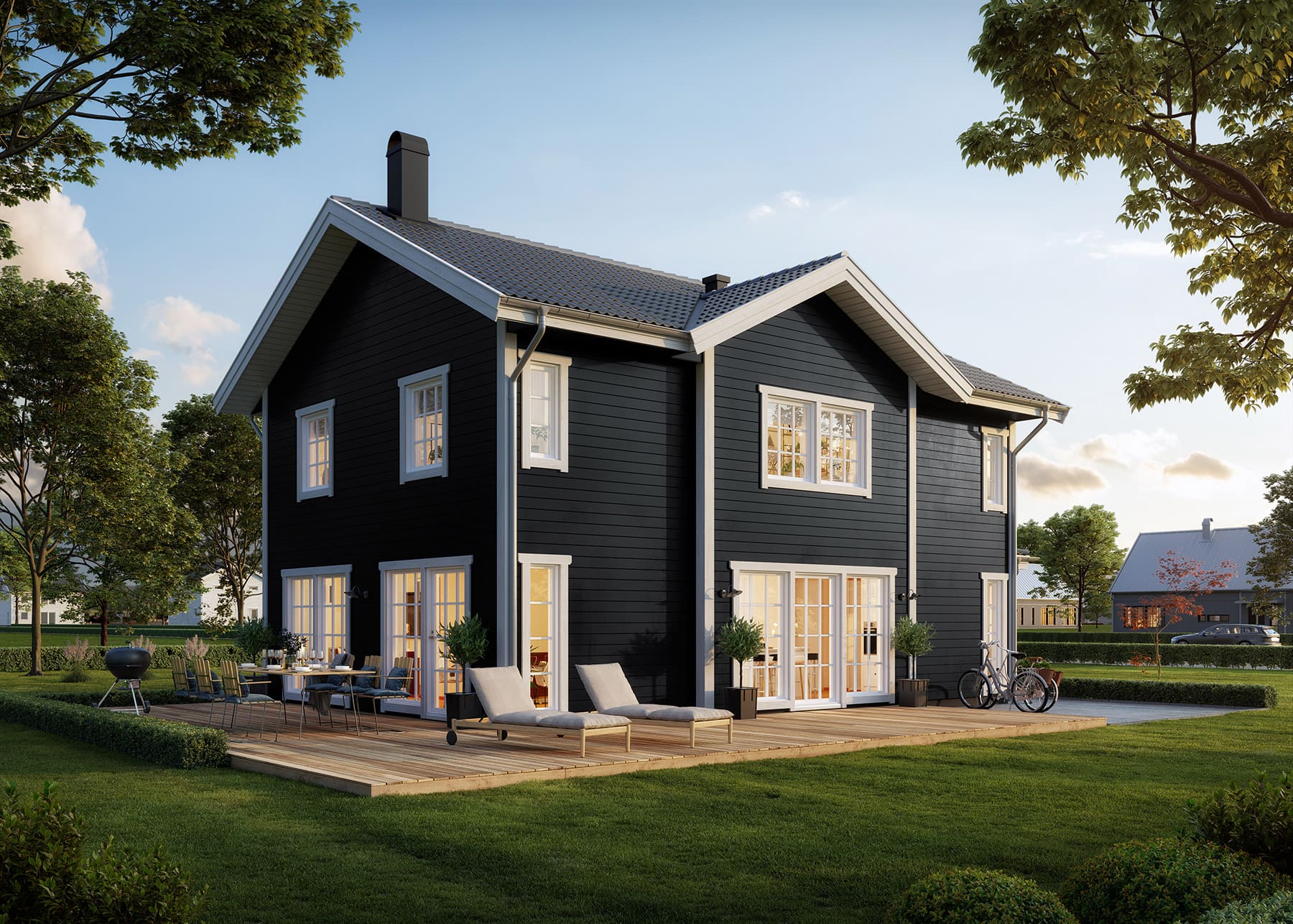 Mit einem einladenden Eingang und einer großzügigen Terrasse ist Ljunghem Klassisch etwas Besonderes. Es ist das ideale Haus für die Stadtfamilie, die geräumig und stadtnah wohnen möchte, aber dabei weder auf Platz noch auf das „Bullerbü“-Gefühl verzichten möchte. Ljunghem Klassisch bietet ausreichend Raum für Familientreffen, Teenager und Hobbys. Zu den Standardmerkmalen gehören großzügige Gemeinschaftsräume, vier Schlafzimmer sowie zusätzlicher Stauraum. Die Terrasse, die sowohl eine wunderschöne Aussicht als auch viel Privatsphäre bietet, rundet das Gesamtbild perfekt ab.