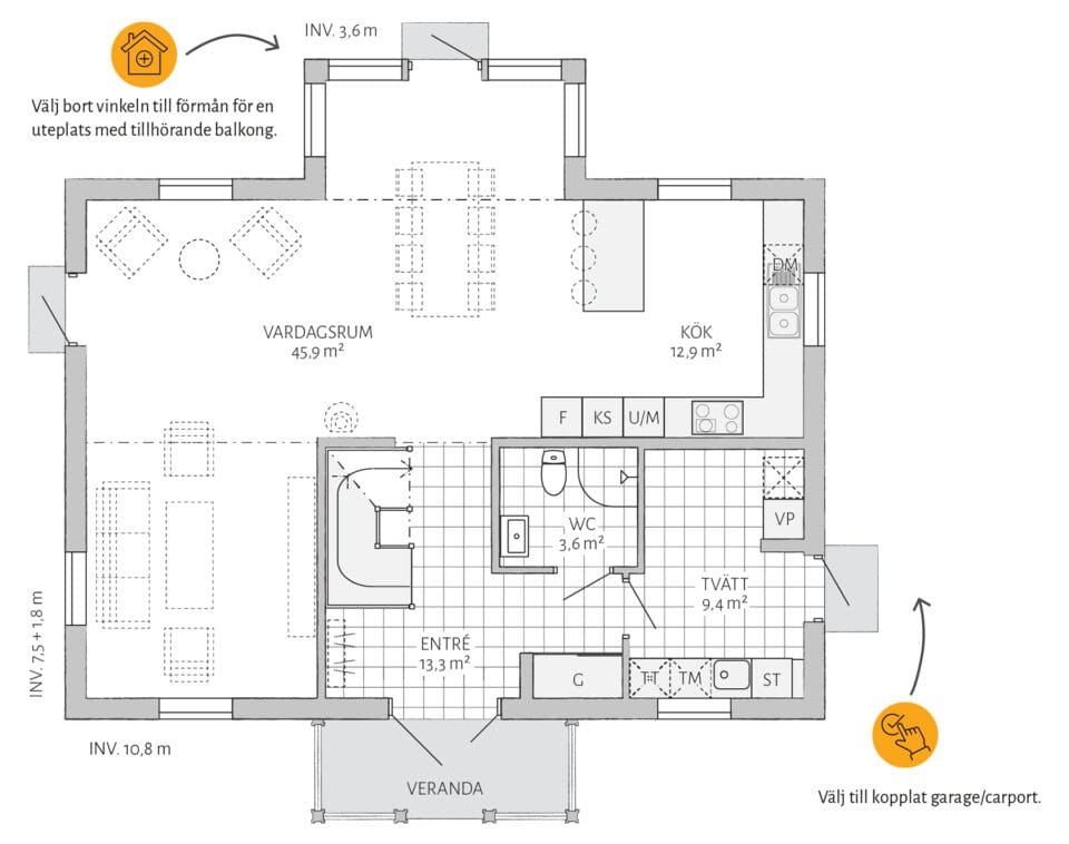 Stjärnhem ist voller Möglichkeiten. Ein großzügiges und einladendes Esszimmer – oder ein blühender Wintergarten? Du wählst!