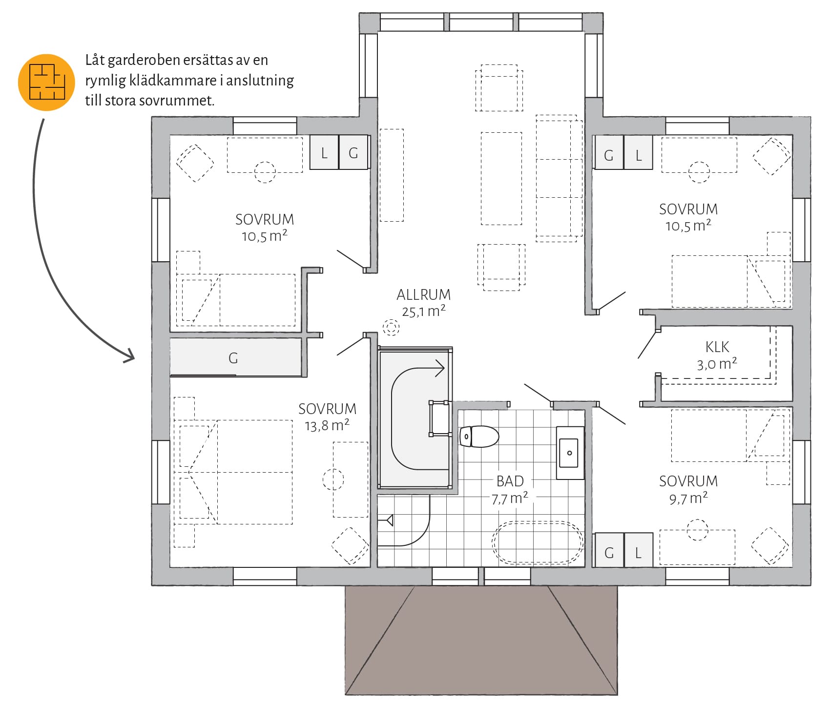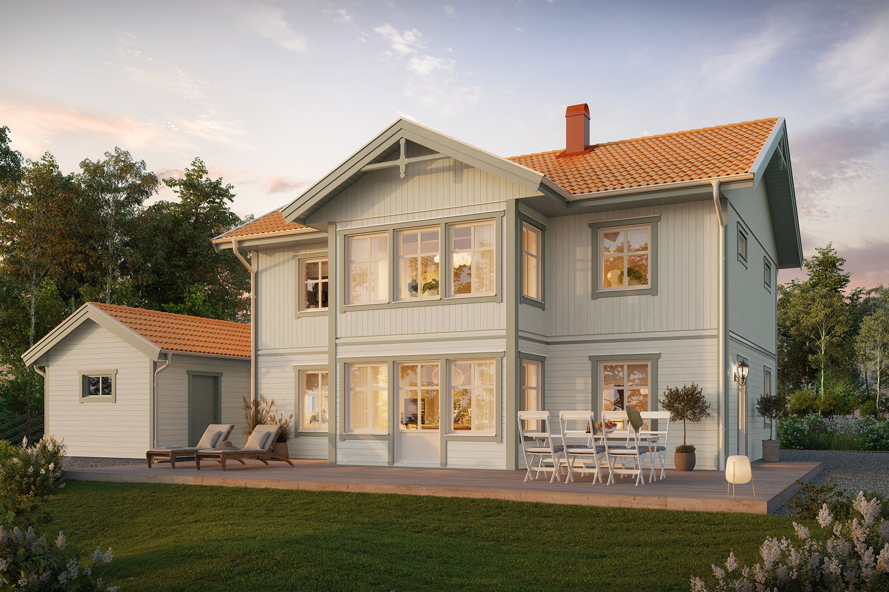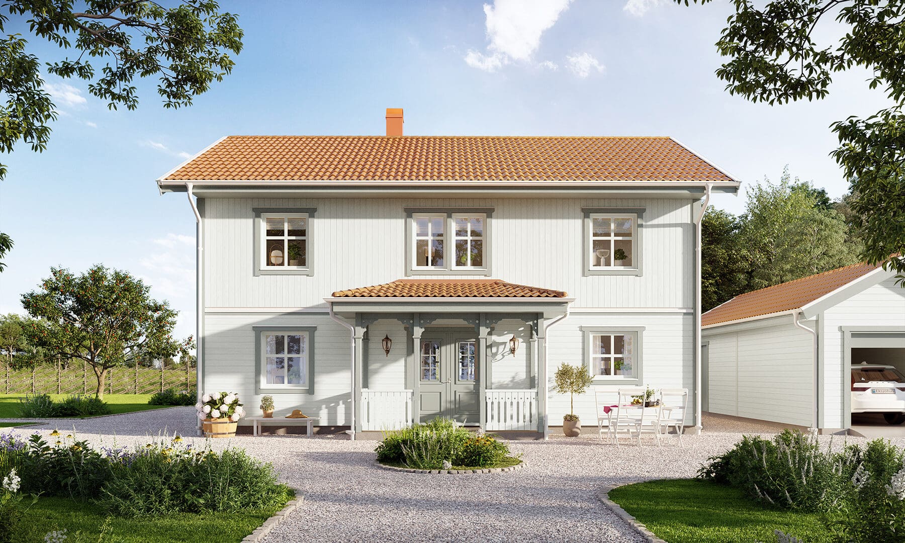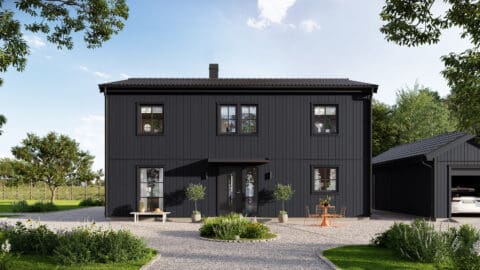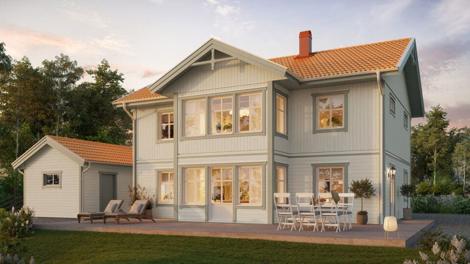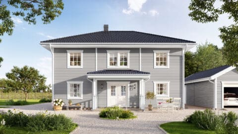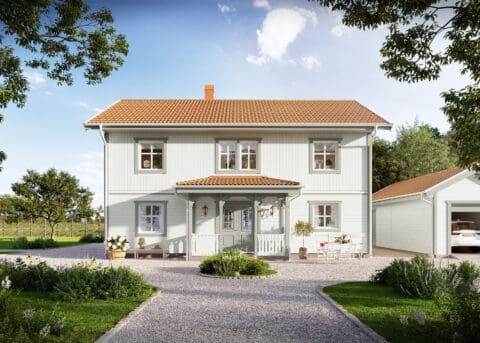 Stjärnhem erhält ein herrliches Landhaus Flair durch seine klassische Außenverschalung und dem symmetrischen Eingangsbereich mit Veranda. Hier gibt es Platz für das meiste, mit einer guten Balance zwischen Ästhetik und Funktion. Dieses Haus kannst Du leicht Deinen Wünschen anpassen und ist im Verhältnis zu seinen Quadratmetern sehr geräumig, wo Gesellschaftsräume, 4 Schlafzimmer und ein prächtiges Esszimmer Platz finden. Ein praktisches Bullerbyhaus, gemacht für das Leben auf dem Land.
