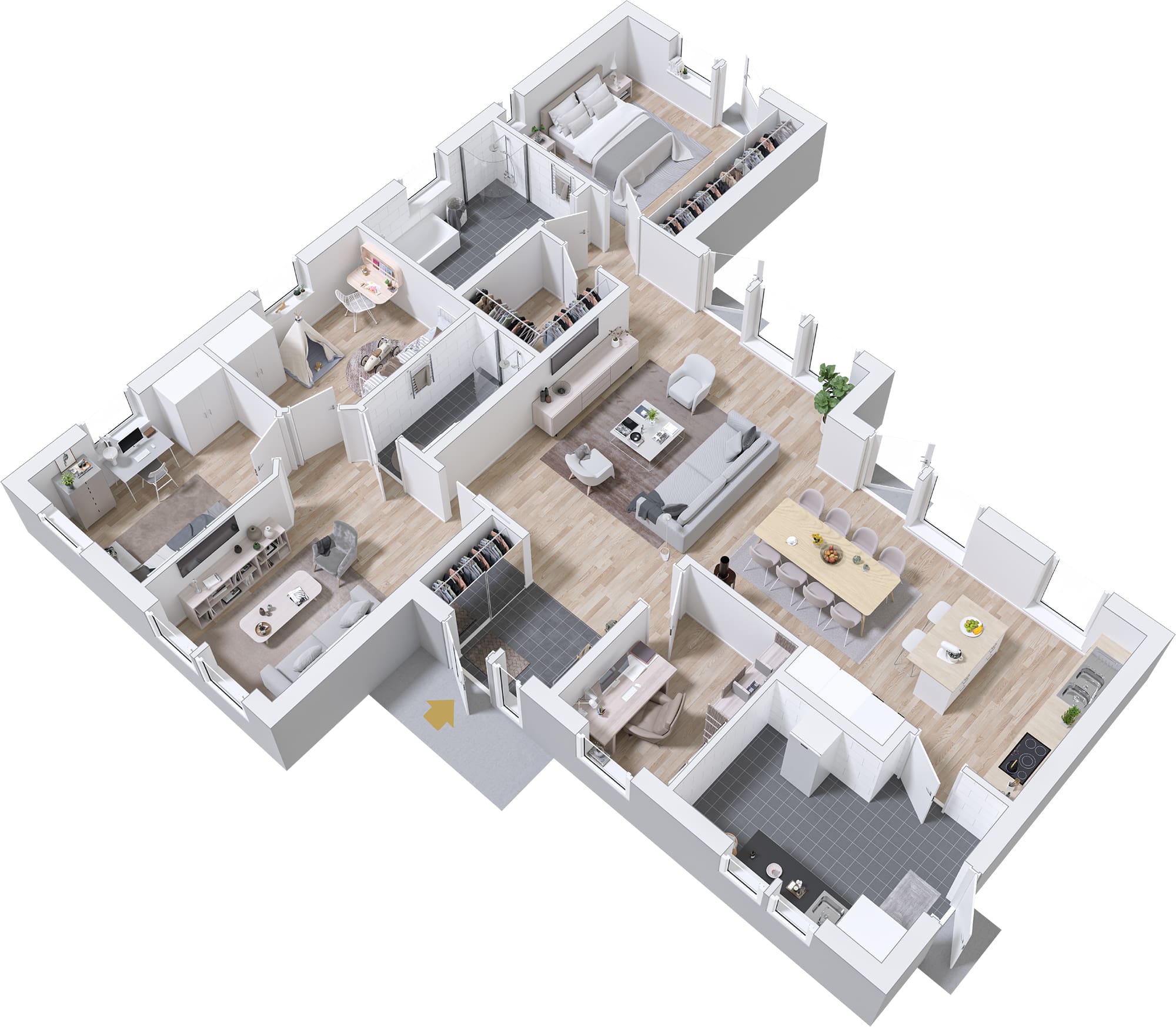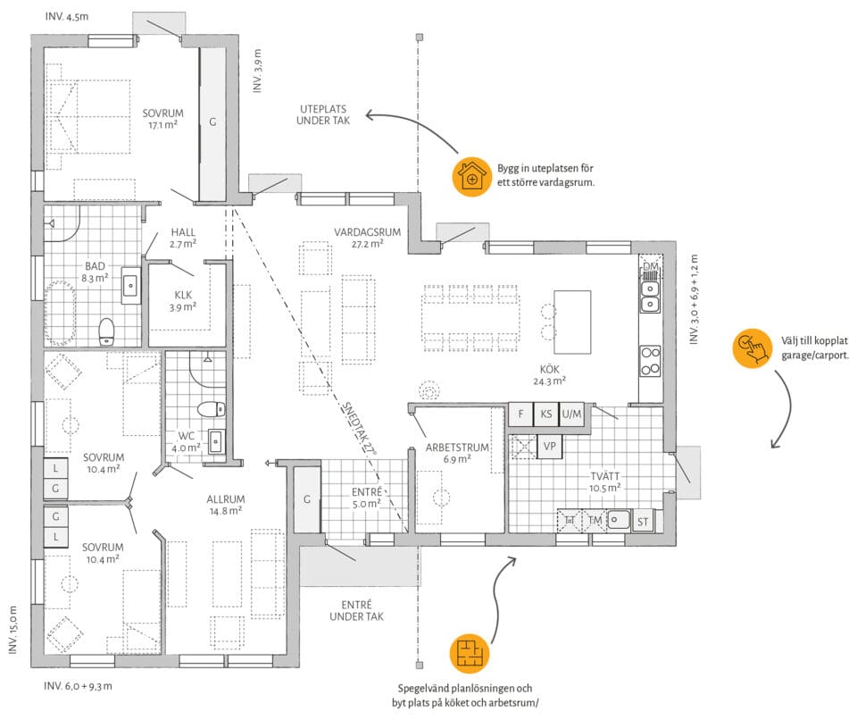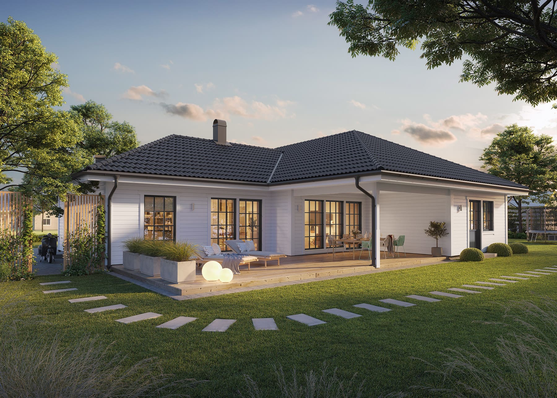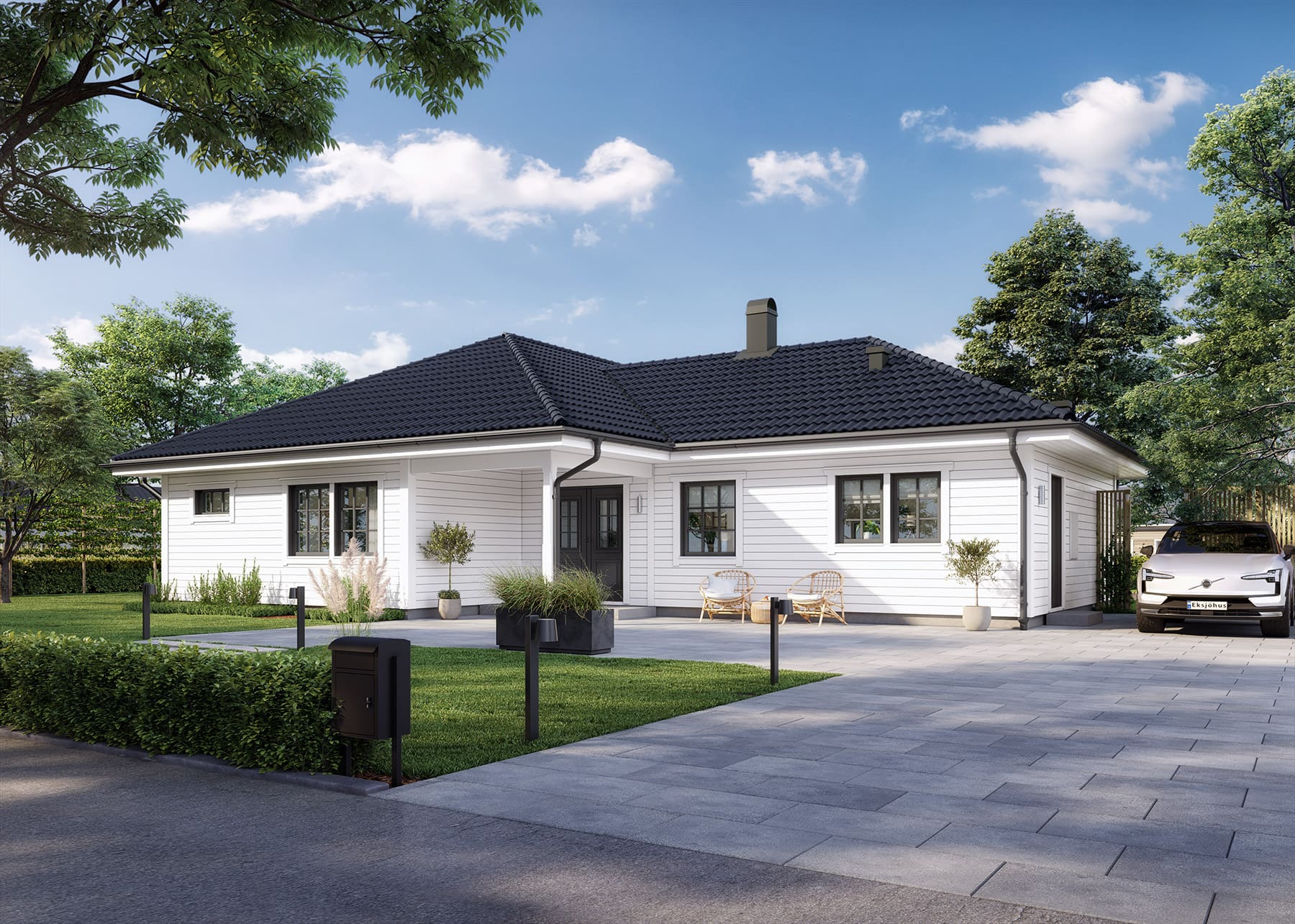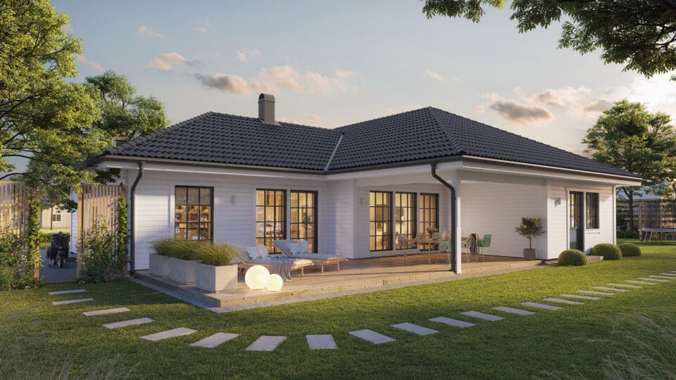 Lerne Vikhem kennen, ein einladendes eingeschossiges Haus für Familien mit Kindern, die auf der Suche nach praktischem Wohnen mit zeitlosem Flair sind. Die geräumige Küche mit angrenzendem Wohnzimmer ist perfekt für ausgiebige Feste, die bei schönem Wetter einfach auf die Terrasse verlegt werden können. In Vikhem können sich die Kinder in einem abgetrennten Bereich im Haus austoben, dessen klassischer Stil eine perfekte Kombination aus geselligem Beisammensein und Familienleben auf 152 Quadratmetern schafft.